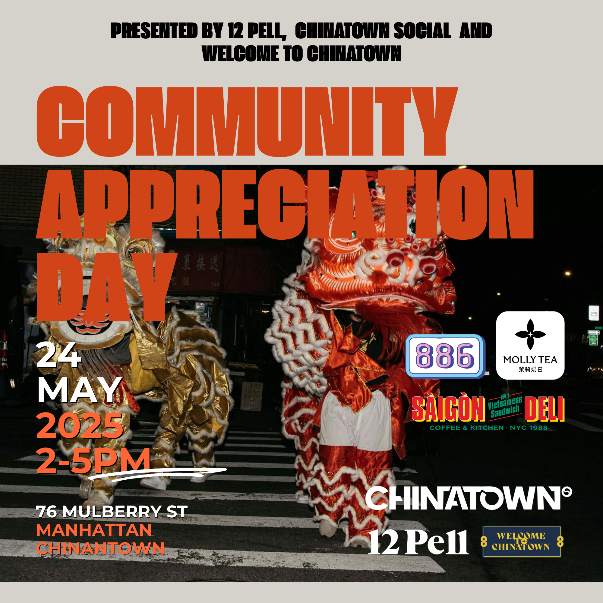 Community Appreciation Day hosted by 12 Pell, Chinatown Social, benefiting Welcome to Chinatown. May 24th 2-5pm