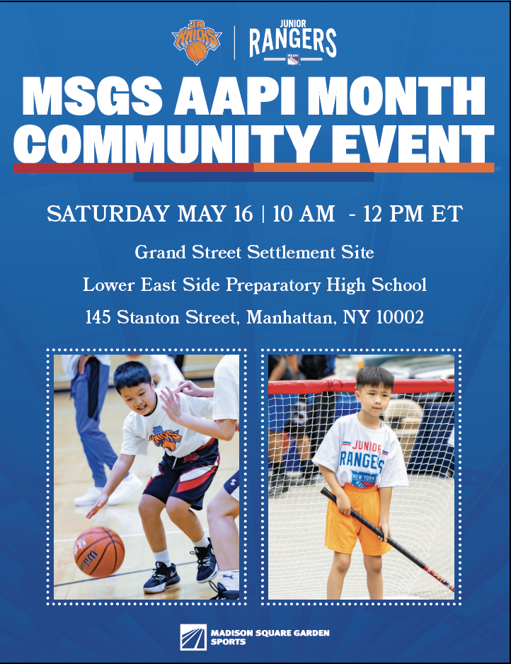 Welcome to Chinatown, Grand Street Settlement, the New York Knicks, and the New York Rangers are teaming up AGAIN to celebrate AAPI Heritage Month, and we want YOU there!