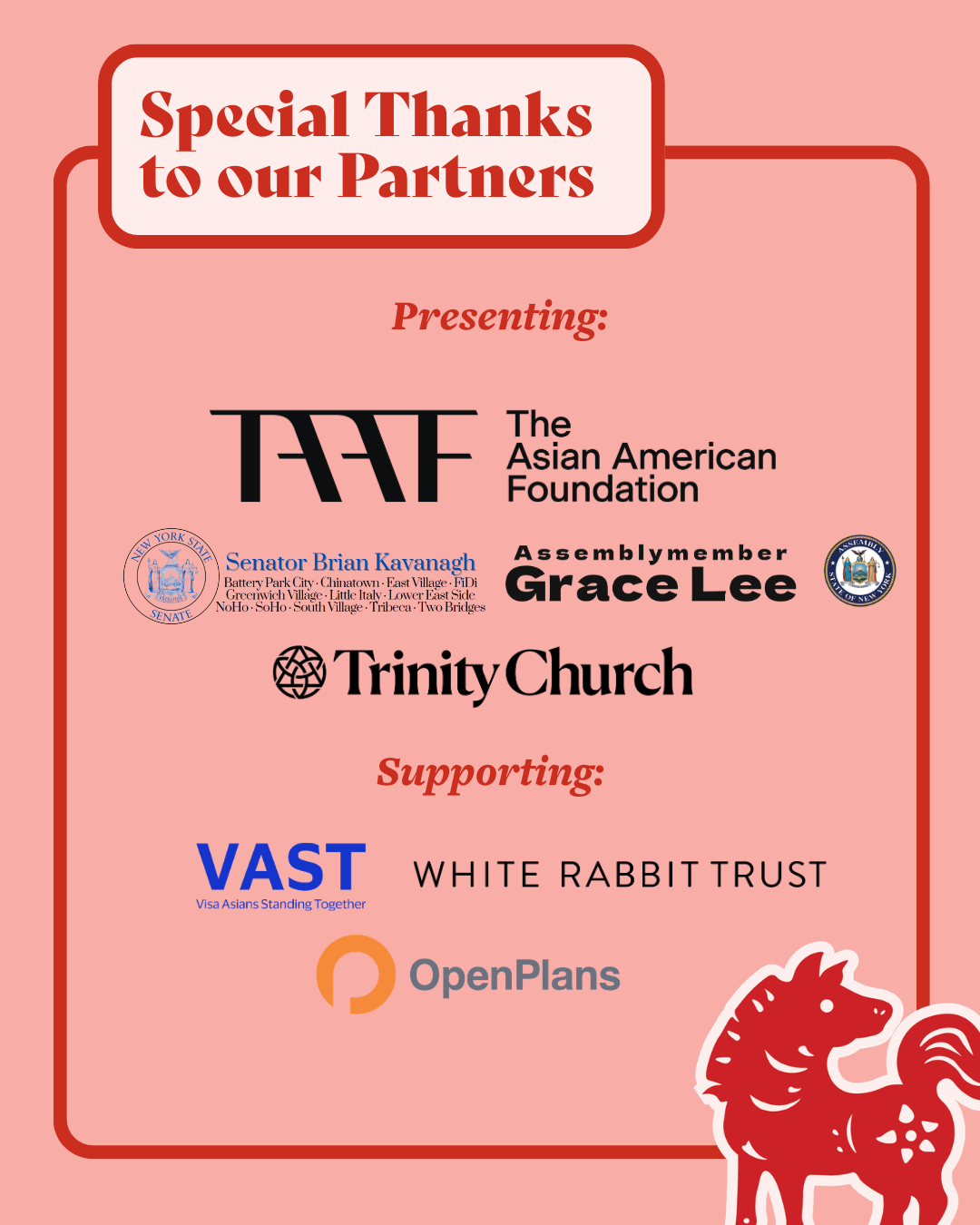 Special thanks to TAFF, Trinity Church NYC, Grace Lee, and Brian Kavanagh for making this celebration possible and our supporting sponsors, VAST, White Rabbit Trust and Open Plans.